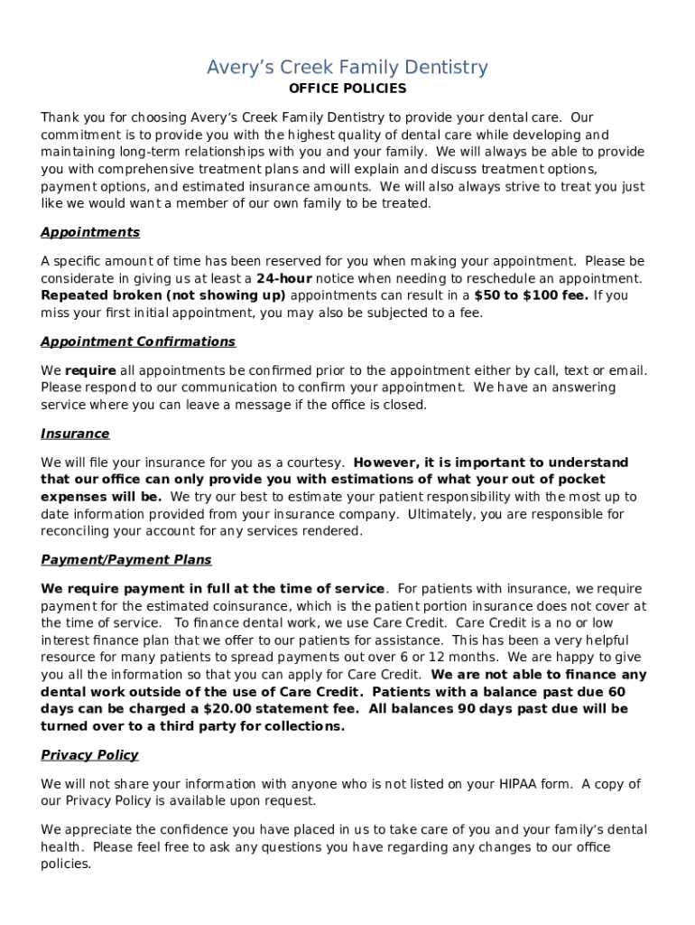 Business Profile - for - Avery's Creek Family Dentistry template instructions