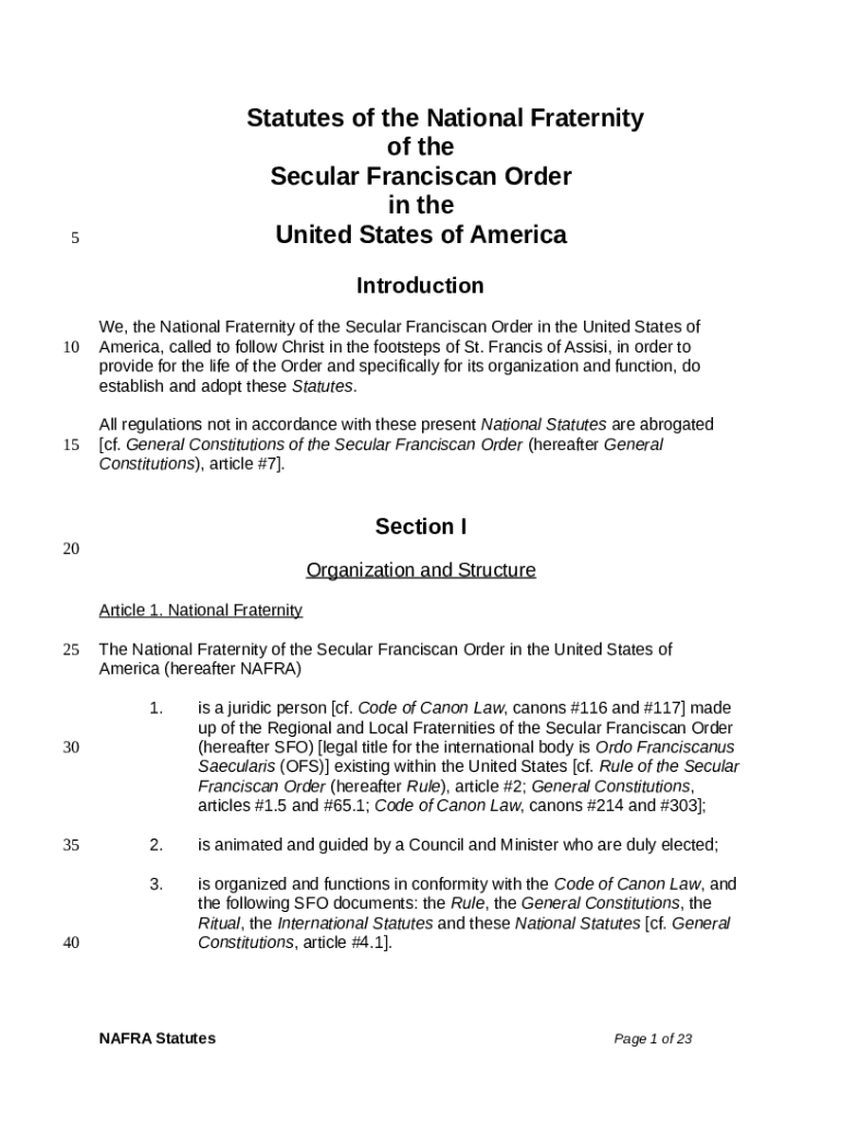The statutes for spiritual and pastoral assistance to the secular ... is a document required to be submitted to the relevant address in order to provide some information. It must be completed and signed, which is possible manually in hard copy, or by using a certain software such as PDFfiller. This tool lets you fill out any PDF or Word document directly in your browser, customize it according to your needs and put a legally-binding e-signature. Right away after completion, you can send the statutes for spiritual and pastoral assistance to the secular ... to the appropriate individual, or multiple recipients via email or fax. The template is printable as well because of PDFfiller feature and options presented for printing out adjustment. Both in electronic and in hard copy, your form will have got clean and professional look. You can also turn it into a template to use later, there's no need to create a new document from the beginning. All that needed is to edit the ready template.
