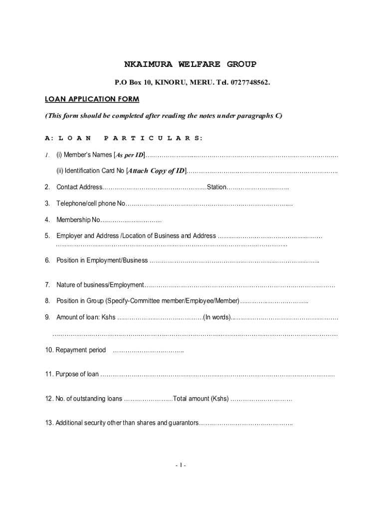 Get the free Emergency Loan Application Form - Nkaimura Welfare Group