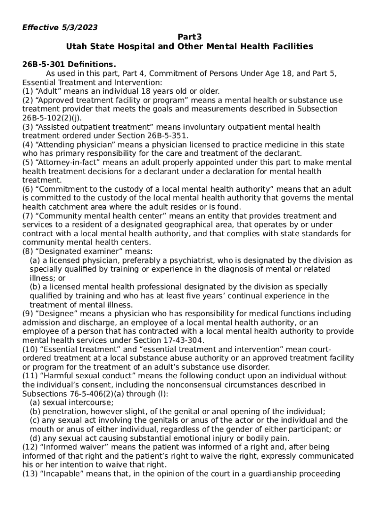 Part 3 Utah State Hospital and Other Mental Health Facilities - le utah template instructions