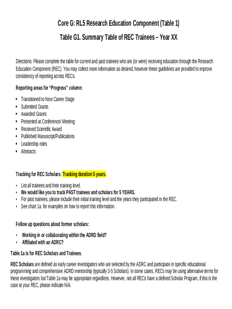 Template REC Trainee Program - Alzheimer's Disease Research Center instructions