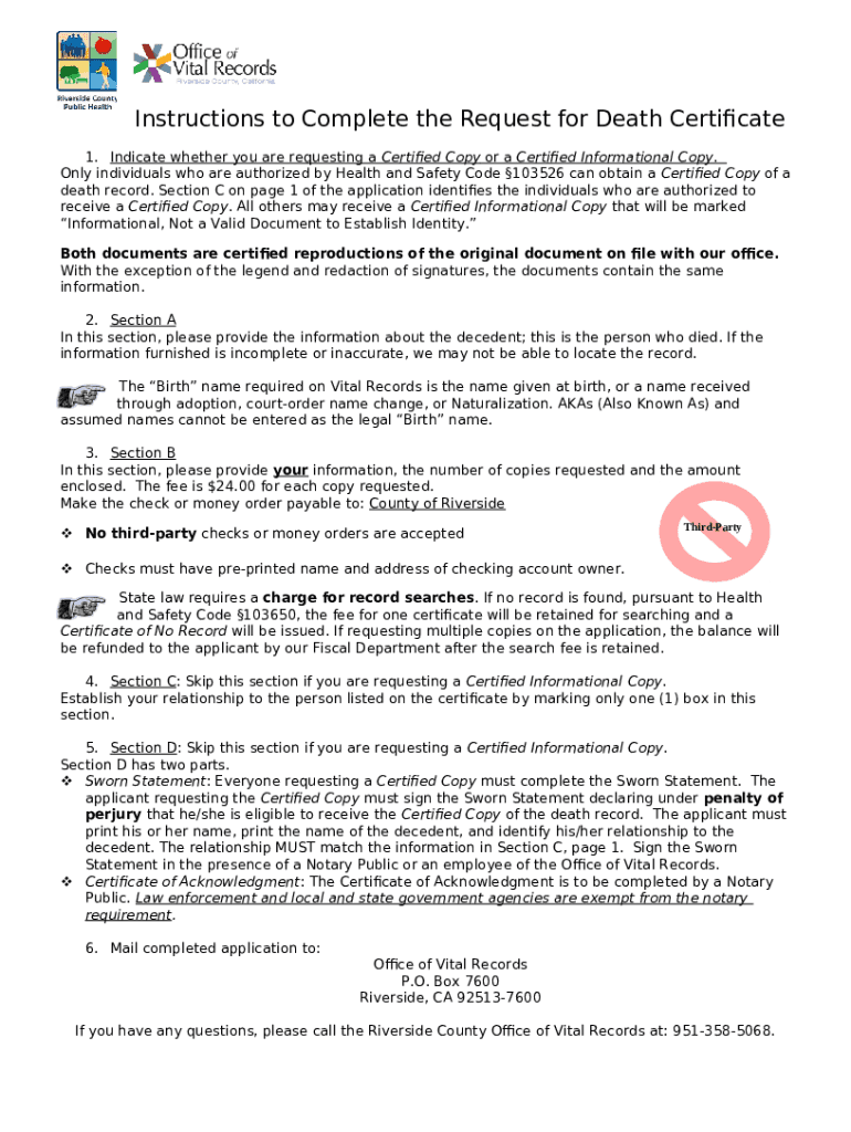 How to fill out instructions for requesting a copy of a death record