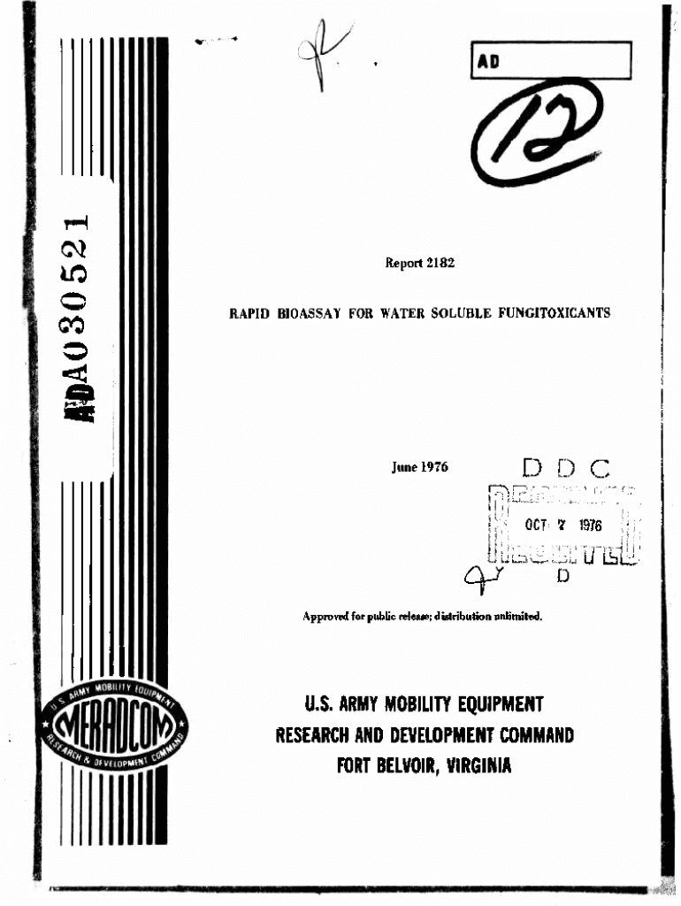 Get the free Rapid Bioassay for Water Soluble Fungitoxicants. A screening method for water solubl...