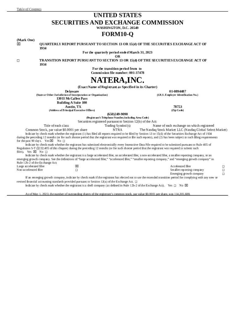 What is natera, inc. - cloudfront.net Form?