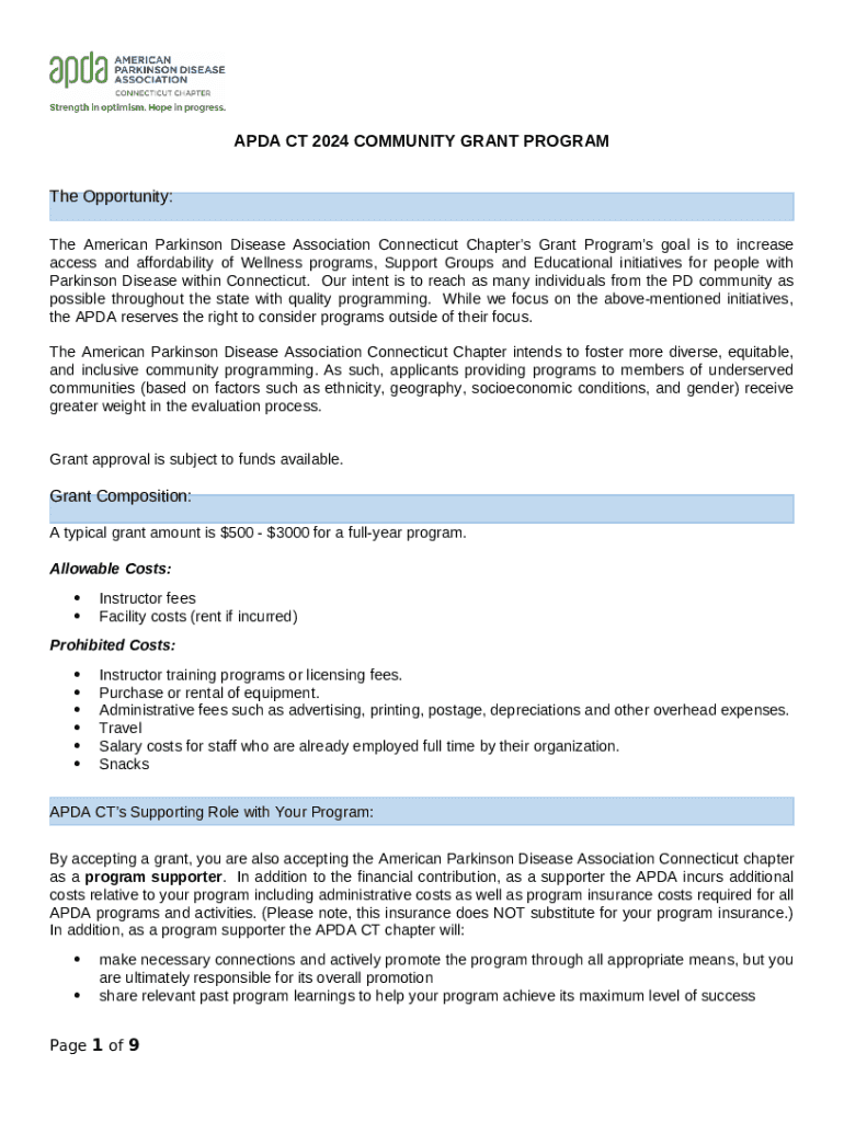 APDA Connecticut Chapter Community Grant Application: frequently asked questions