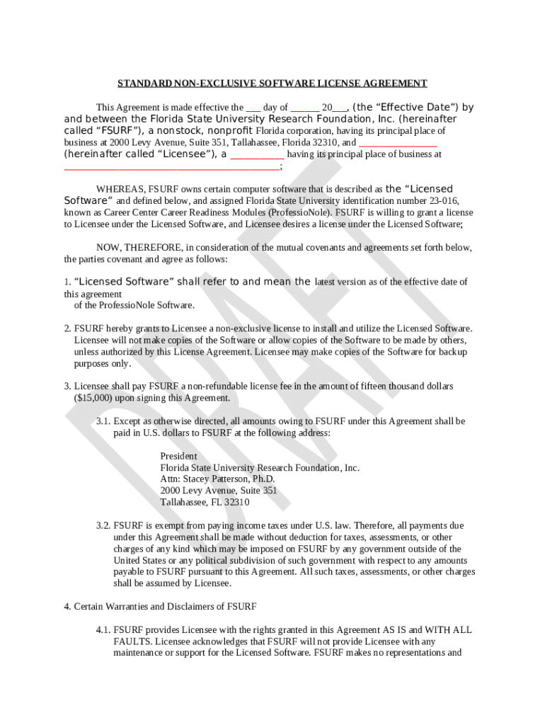 The Technology License Agreement between The Research ... is a fillable form in MS Word extension required to be submitted to the specific address to provide some info. It has to be filled-out and signed, which can be done manually in hard copy, or via a certain solution such as PDFfiller. This tool helps to complete any PDF or Word document right in the web, customize it according to your requirements and put a legally-binding e-signature. Right away after completion, you can send the Technology License Agreement between The Research ... to the appropriate receiver, or multiple ones via email or fax. The blank is printable as well because of PDFfiller feature and options proposed for printing out adjustment. Both in electronic and physical appearance, your form will have got clean and professional look. It's also possible to save it as the template to use it later, so you don't need to create a new file again. You need just to customize the ready form.