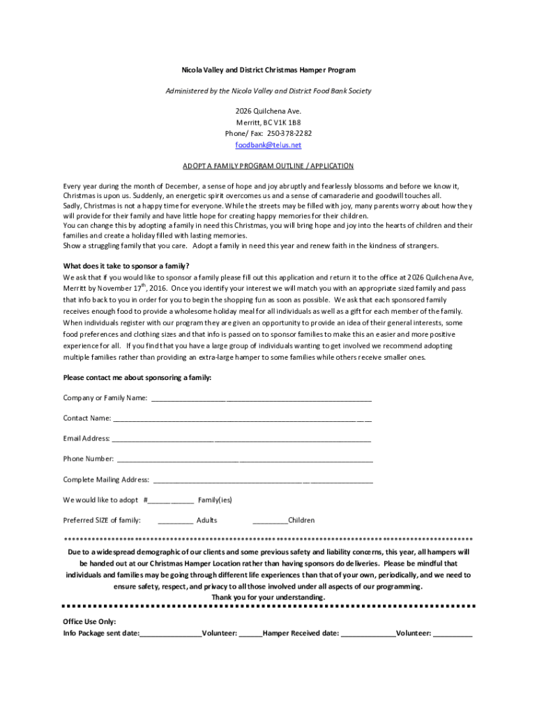 Get the free Nicola Valley and District Christmas Hamper Program