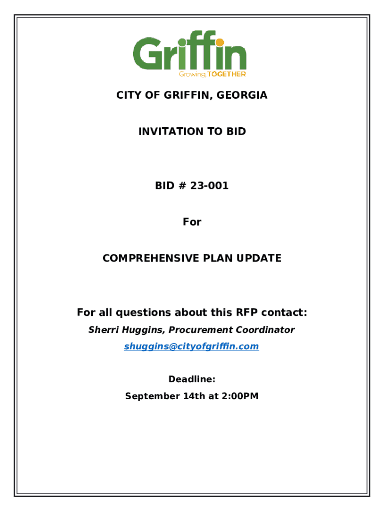 CITY OF GRIFFIN, GEORGIA INVITATION TO BID 22-010 template instructions