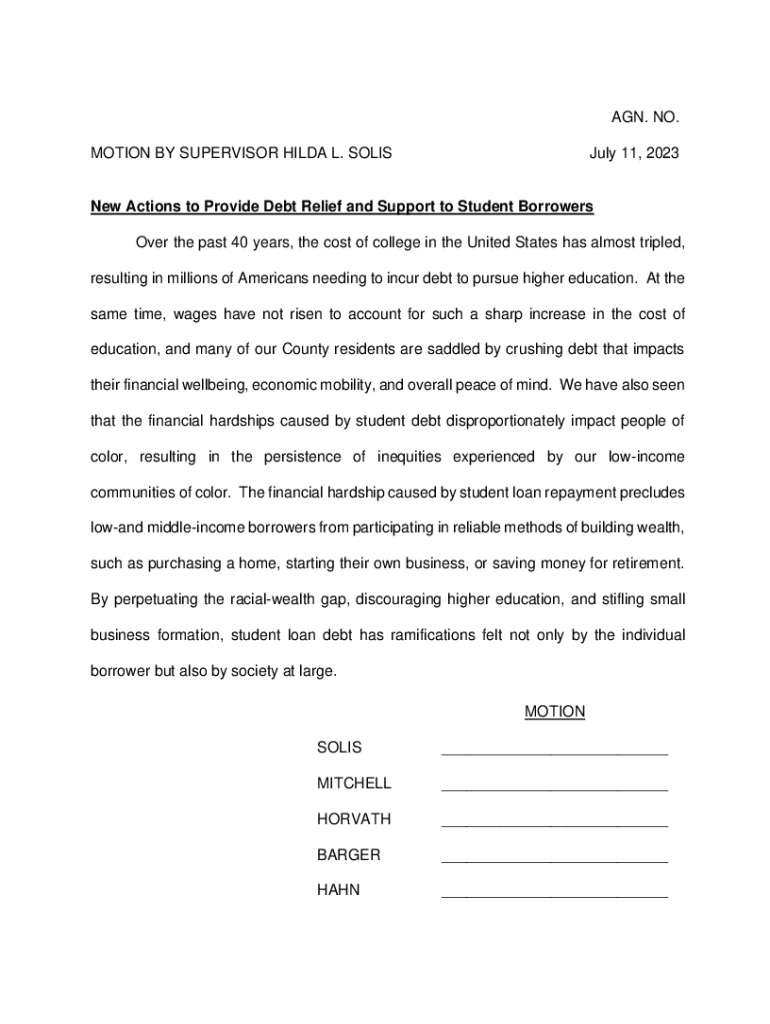 MOTION BY SUPERVISOR HILDA L. Salisbury 11, 2023New Actions to Provide Debt Relief and Support to Student Borrowers