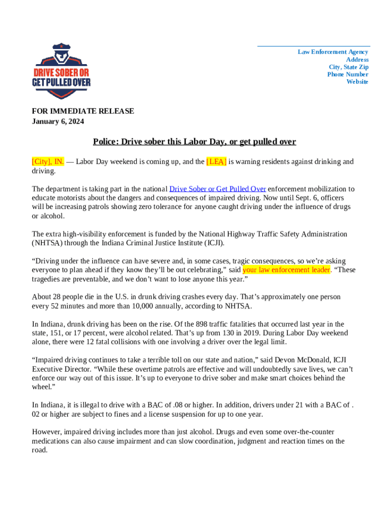 Instructions for the form NHTSA Launches Labor Day 'Drive Sober or Get Pulled ...