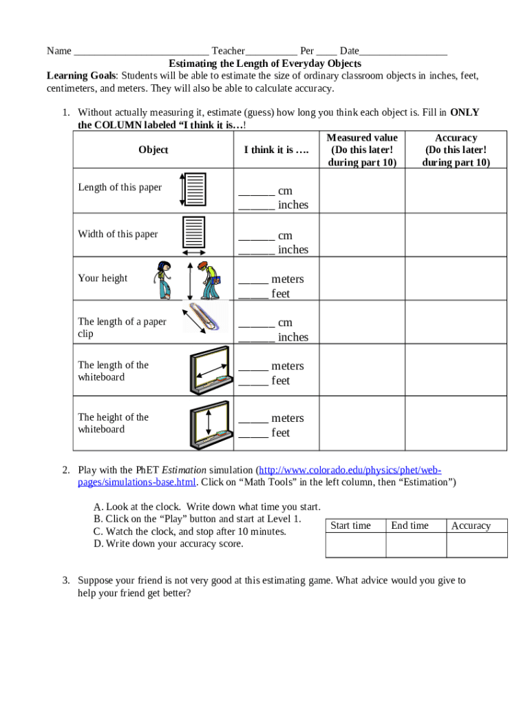 Instructions for the Name Teacher Per Date Estimating the Length of form