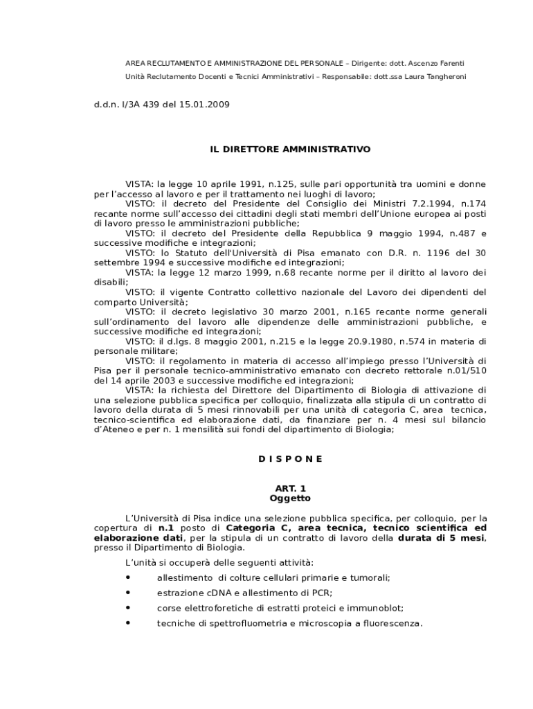 AREA RECLUTAMENTO E AMMINISTRAZIONE DEL PERSONALE - Dirigente: dott: frequently asked questions