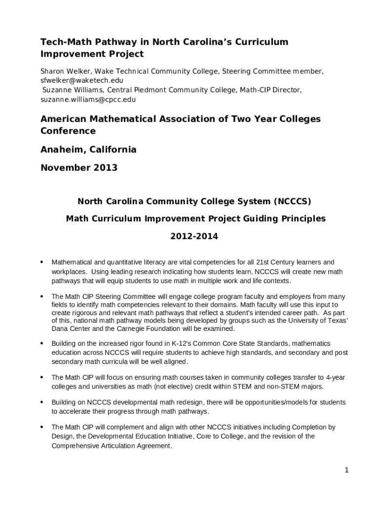 How to fill out Tech-Math Pathway in North Carolinas Curriculum Improvement Project