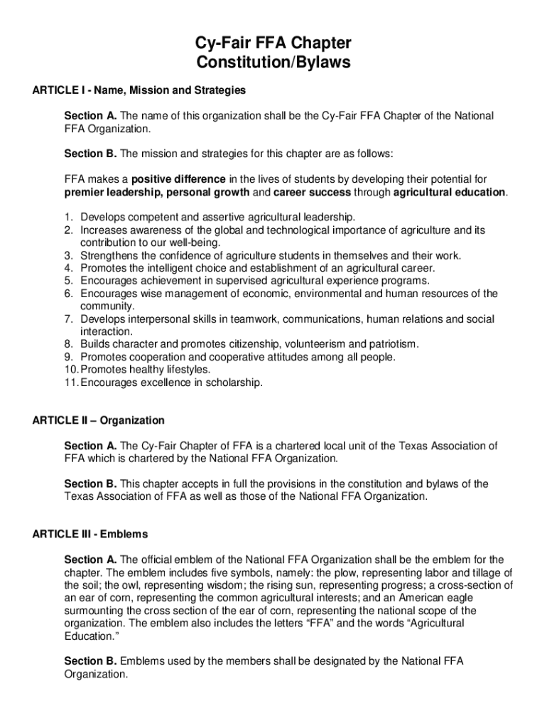 Section A. The name of this organization shall be the Year FFA Chapter of the National