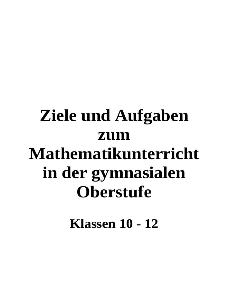What is Ziele und Aufgaben zum Mathematikunterricht in der ... Form?