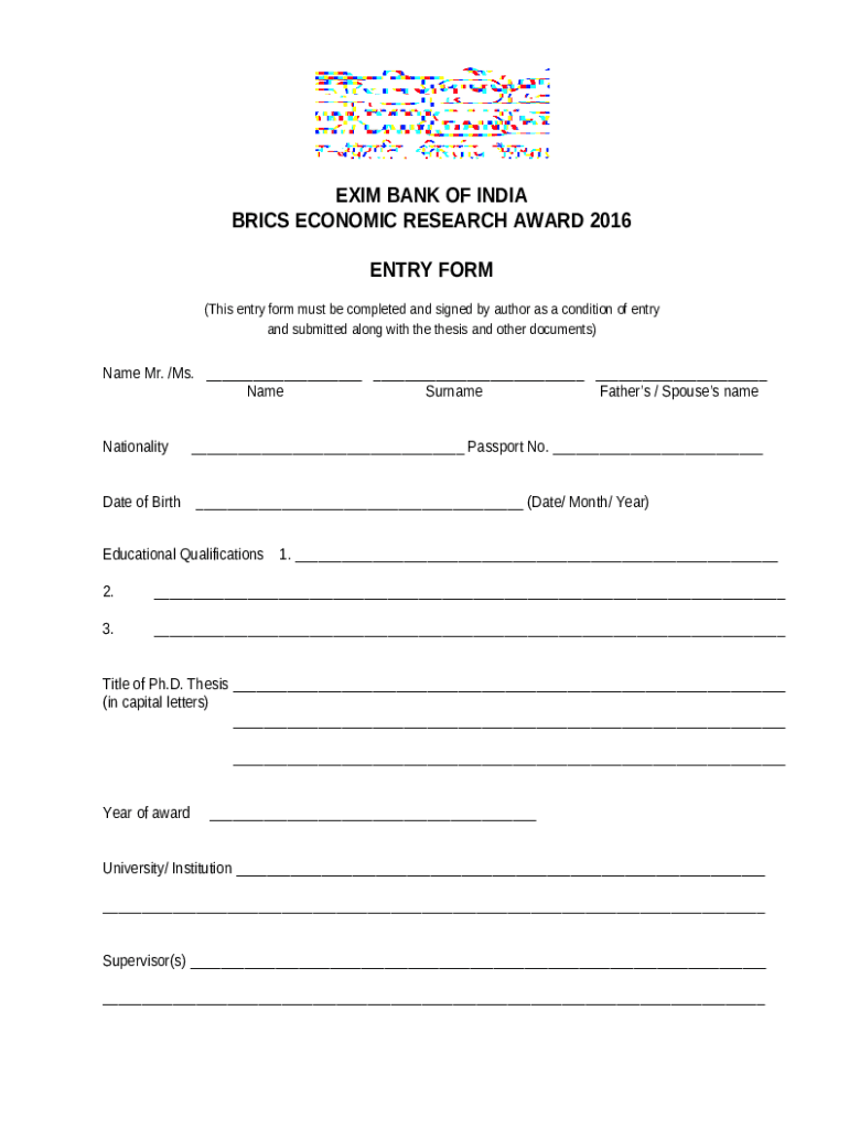 India's Exim Bank Opens Entries for the BRICS Economic ... template instructions