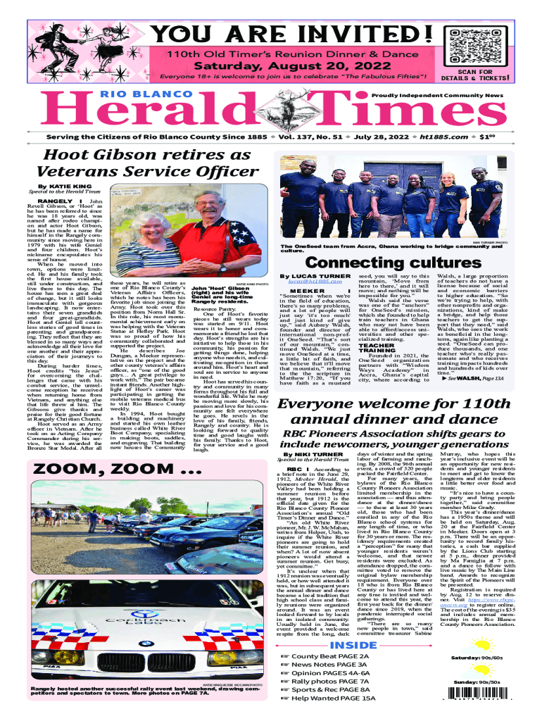 YOU ARE INVITED! 110th Old Timers Reunion Dinner & DanceSaturday, August 20, 2022Everyone 18+ is welcome to join us to celebrate The Fabulous Fifties!scan for details & tickets!Proudly Independent