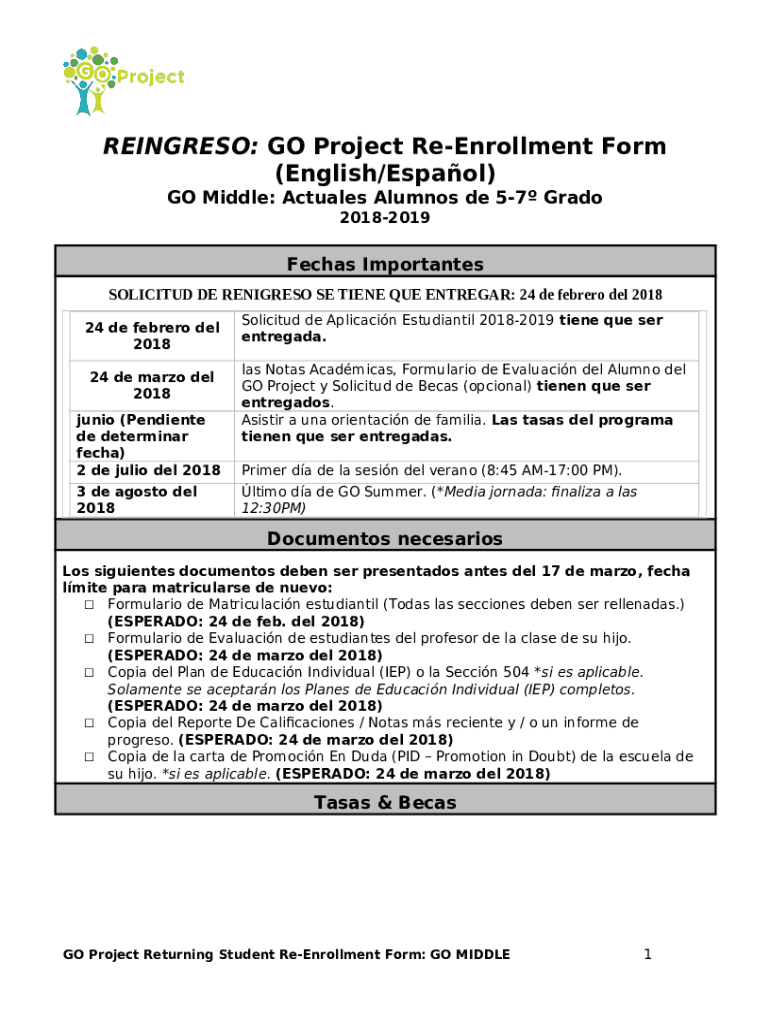 What is GO Project Re-Enrollment (English/Espaol) GO Middle Form?