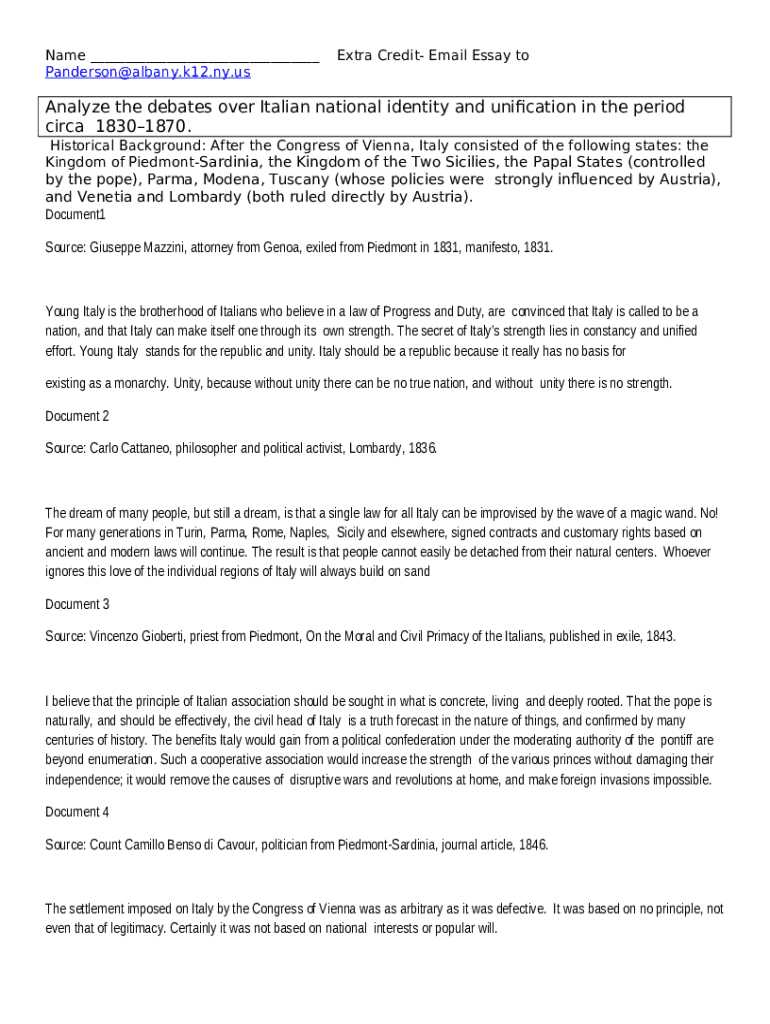 The AP European History 11.2.docx - 11.2 Document Analysis... is a Word document that can be filled-out and signed for certain needs. Then, it is furnished to the relevant addressee to provide some details of certain kinds. The completion and signing can be done manually or via a trusted tool like PDFfiller. These services help to send in any PDF or Word file without printing them out. While doing that, you can customize it for your requirements and put an official legal e-signature. Once done, you send the AP European History 11.2.docx - 11.2 Document Analysis... to the recipient or several of them by mail or fax. PDFfiller is known for a feature and options that make your blank printable. It has various settings when printing out appearance. No matter, how you file a form - physically or by email - it will always look well-designed and clear. To not to create a new writable document from scratch every time, make the original document as a template. Later, you will have a rewritable sample.