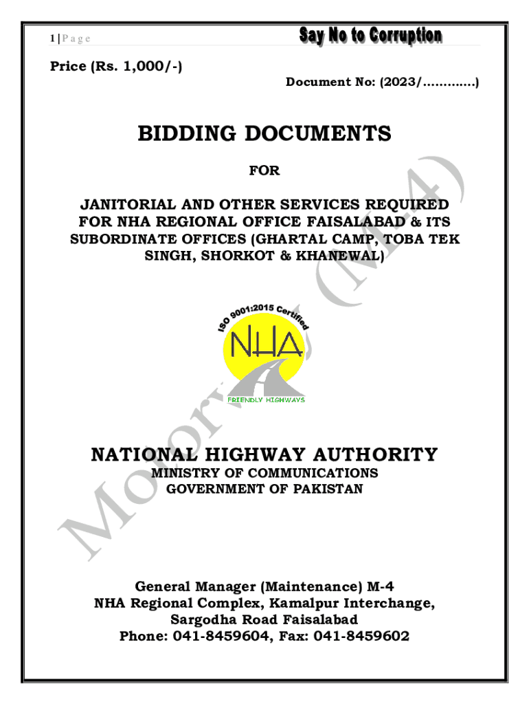FOR NHA REGIONAL OFFICE FAISALABAD & ITS