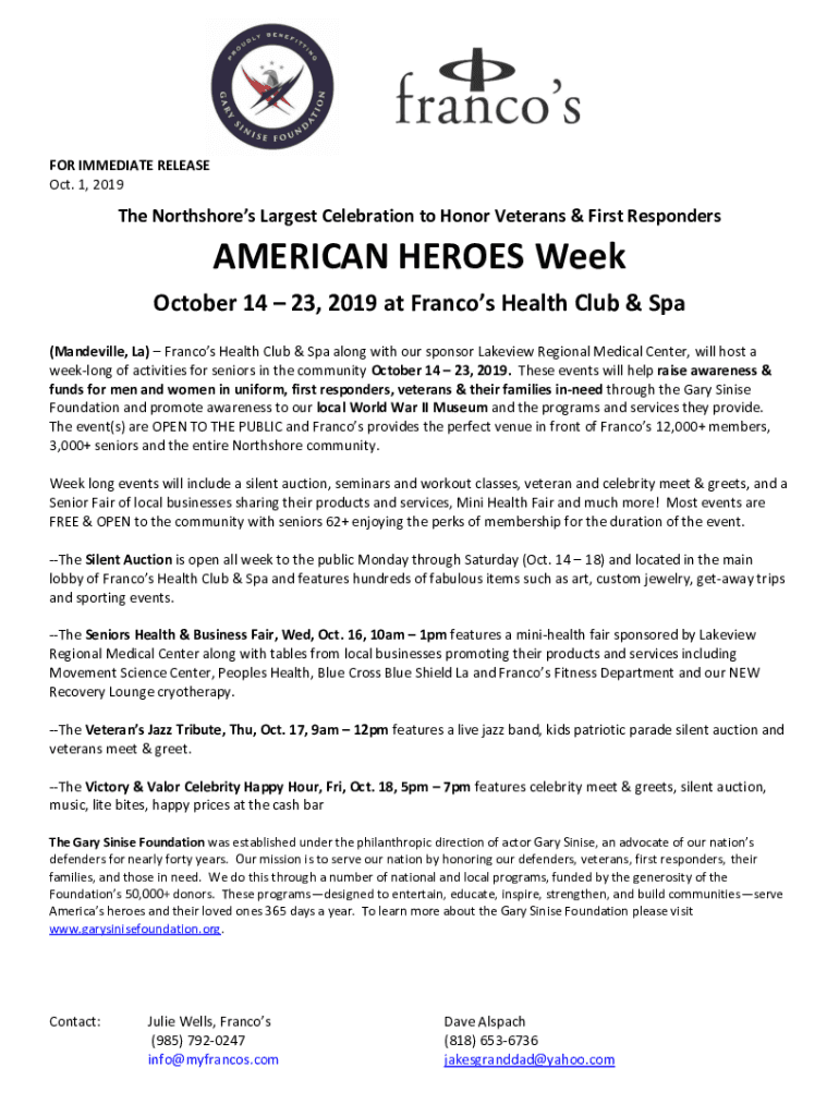 Oct. 1, 2019The North shores Largest Celebration to Honor Veterans & First RespondersAMERICAN HEROES Week