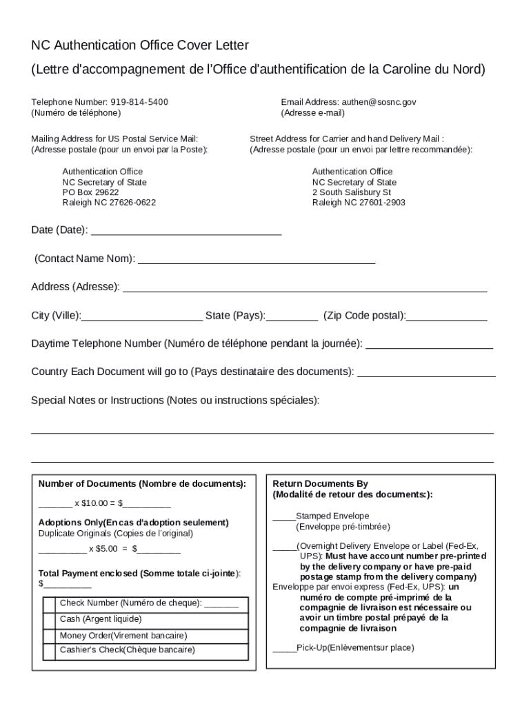 The North Carolina Secretary of State Authentications ... is a Word document that can be filled-out and signed for specified needs. Next, it is furnished to the relevant addressee in order to provide certain info of any kinds. The completion and signing is able manually in hard copy or via a suitable solution e. g. PDFfiller. These services help to complete any PDF or Word file without printing out. It also lets you edit its appearance depending on your needs and put an official legal e-signature. Once done, the user ought to send the North Carolina Secretary of State Authentications ... to the respective recipient or several ones by email or fax. PDFfiller is known for a feature and options that make your template printable. It includes different settings for printing out. No matter, how you'll distribute a document - physically or electronically - it will always look well-designed and clear. To not to create a new file from scratch all the time, make the original file into a template. Later, you will have an editable sample.
