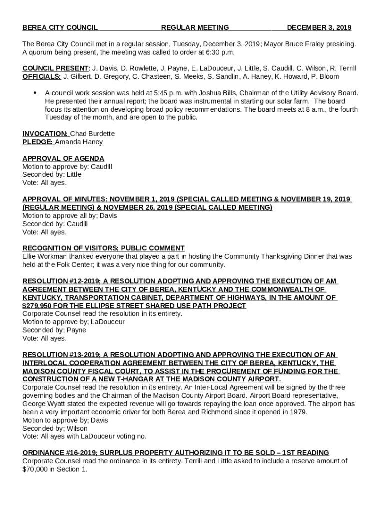Instructions for the The Berea City Council met in a regular session, Tuesday ... form