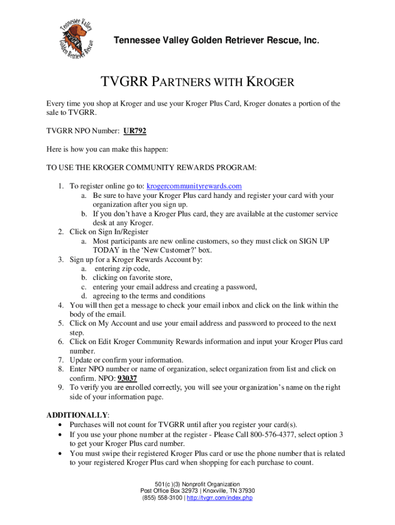 Tennessee Valley Golden Retriever Rescue, Inc.TIGER PARTNERS WITH KROGER
