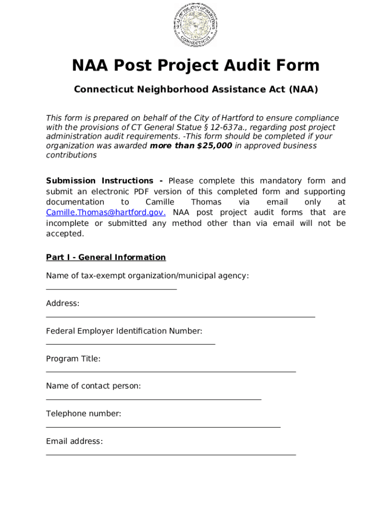 Instructions for the NAA Post Project Audit Connecticut ... form