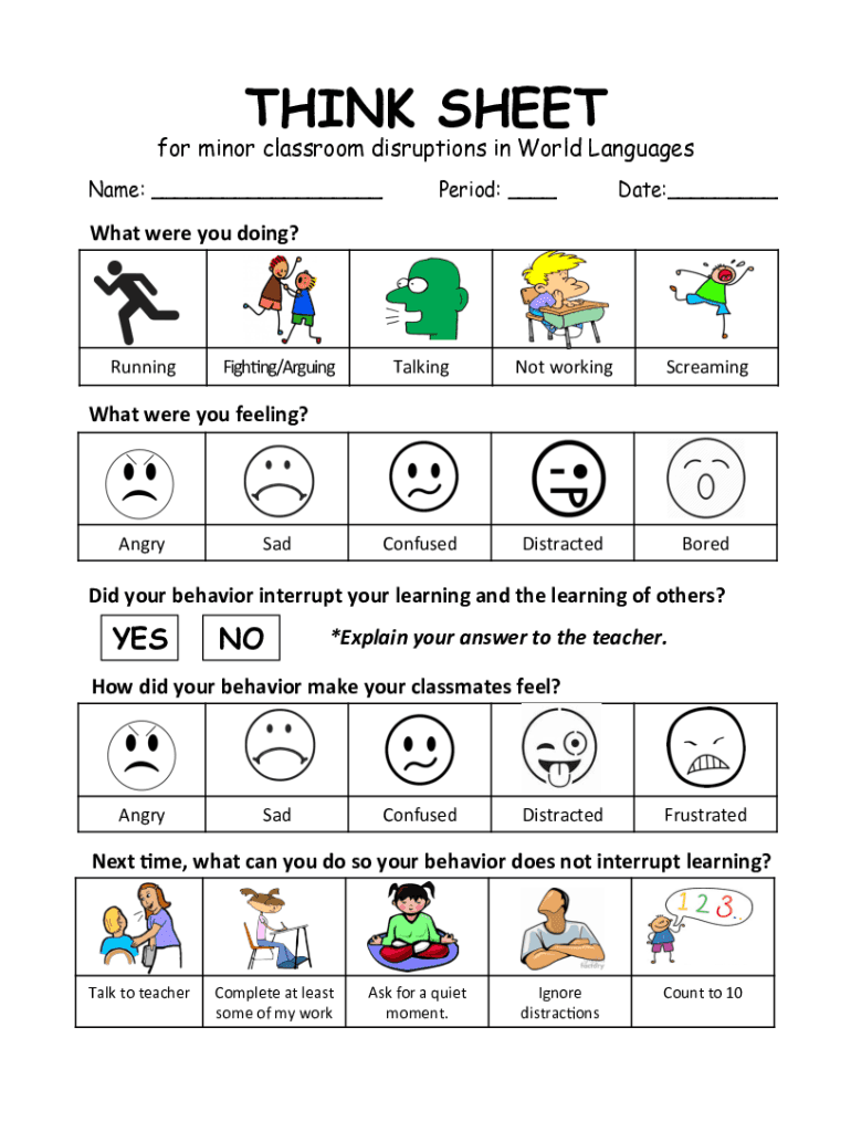 THINK SHEET for minor classroom disruptions in World Languages