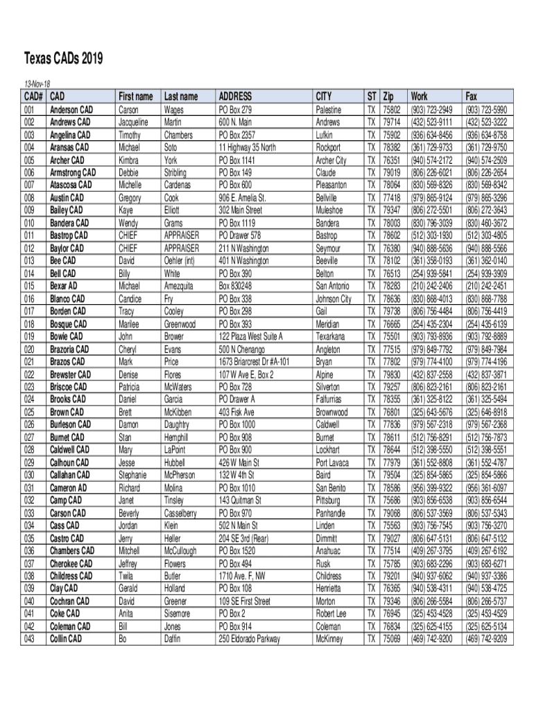 Texas CAD's 2019
