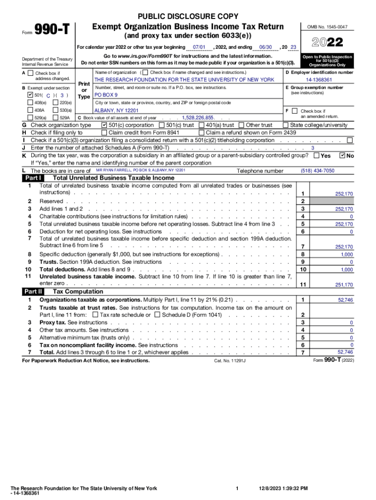 Form990TPUBLIC DISCLOSURE Nonexempt Organization Business Income Tax Return