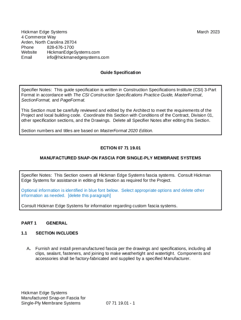 Instructions for the OMG TerminEdge Fascia System. Guide Specification form