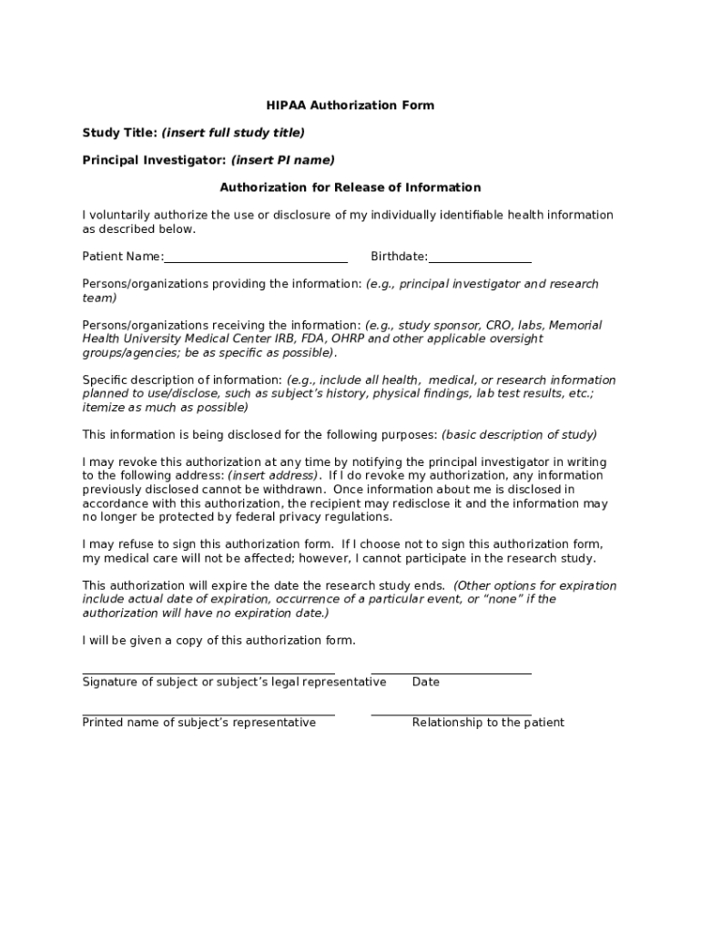HIPAA Authorization for Research - med mercer word template: frequently asked questions