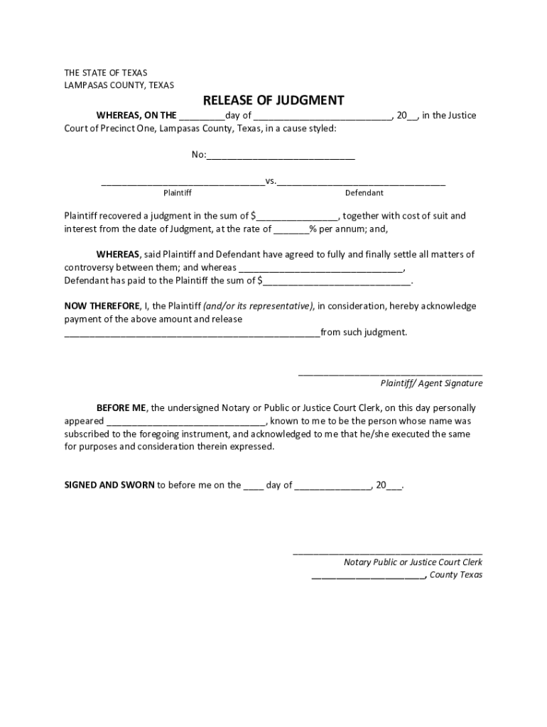 LAMPASASCOUNTY, TEXASRELEASEOFJUDGMENT