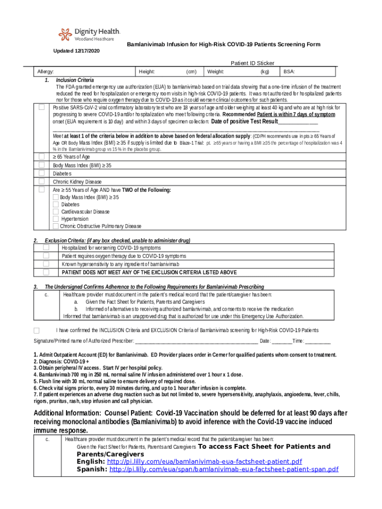 Instructions for the Fact Sheet for Patients, Parents and Caregivers ... form
