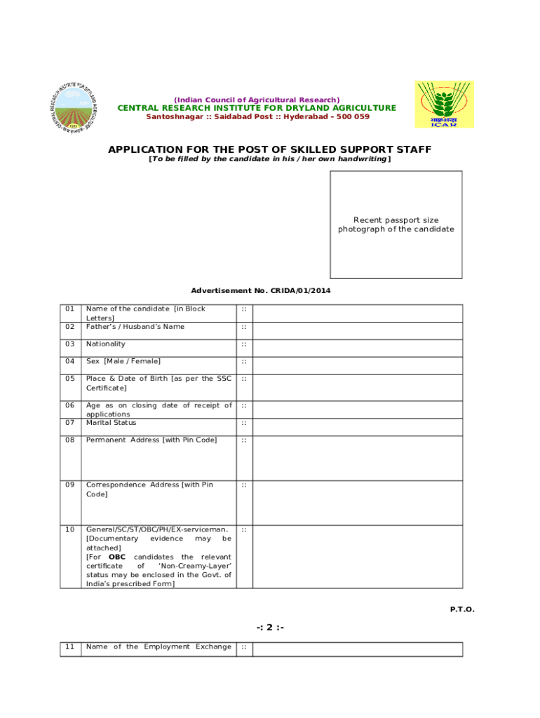 Instructions for the Young Professional at ICAR - Central Research Institute for ... form