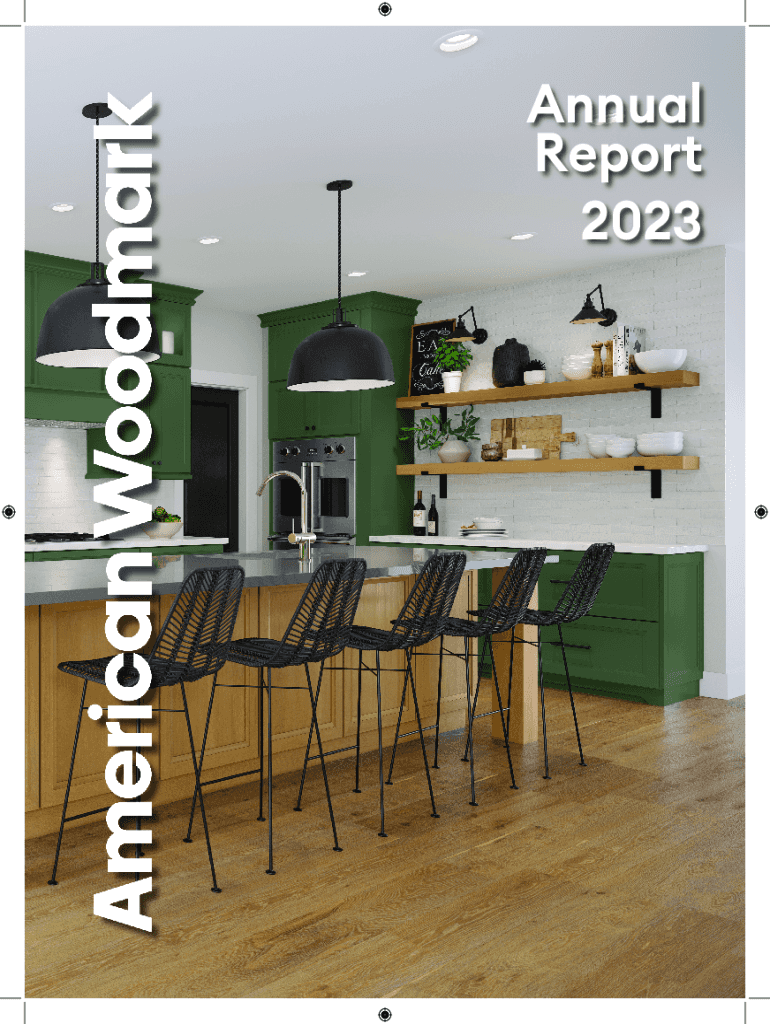 Annual Report 2023At American Woodmark, we do more than make cabinets. We champion your unique style. We inspire fresh designs and bold possibilities, and celebrate the perfect union of creativity,