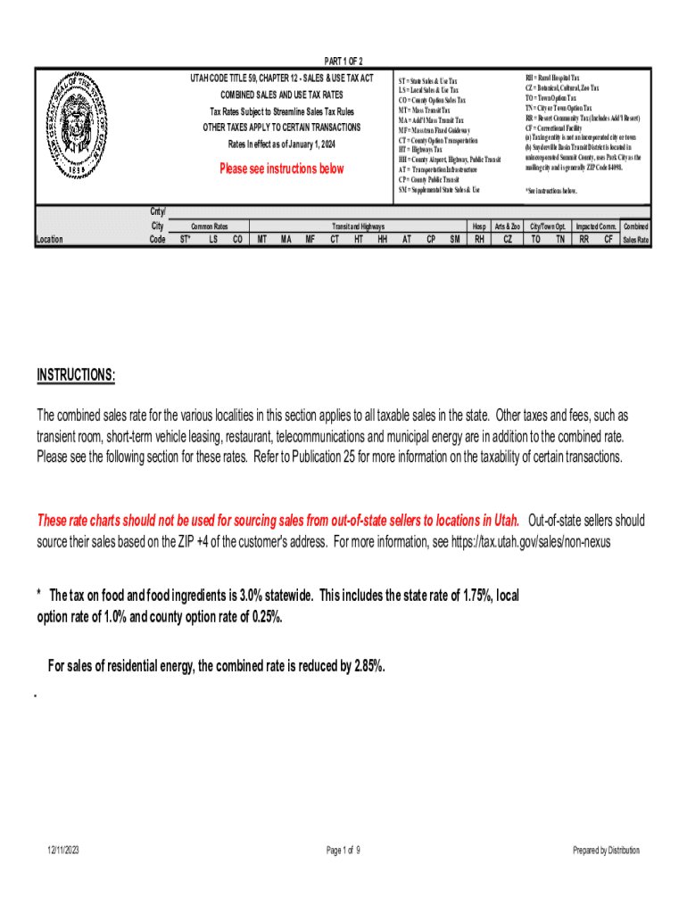 Get the free 1st Quarter 2024 Sales Tax Rates - Combined List. Sales Taxes - tax utah