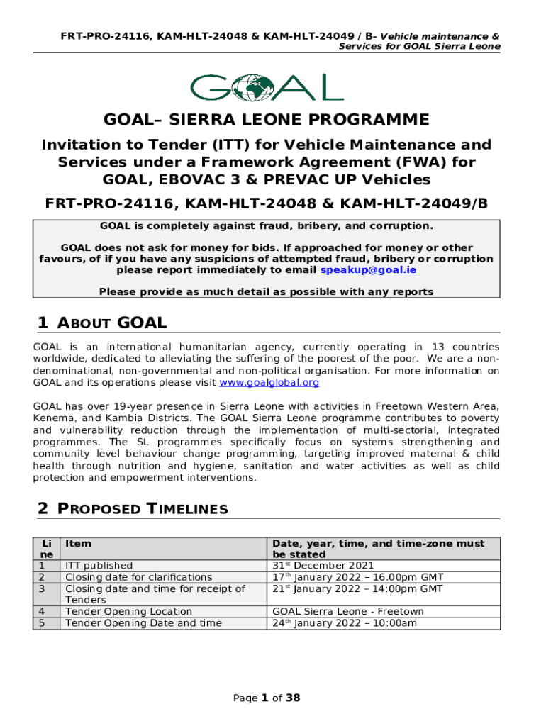 What is Sierra Leone vehicles repair and maintenance tenders ... Form?