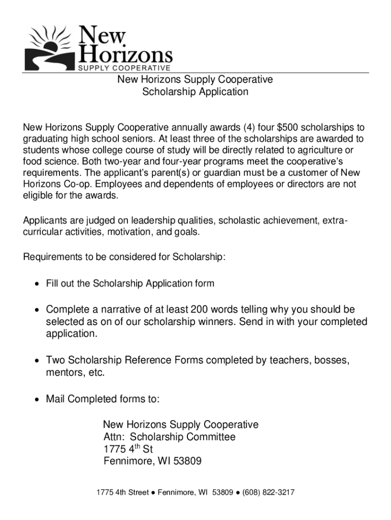 Get the free New Horizons Supply Cooperative annually awards (4) four $500 scholarships to