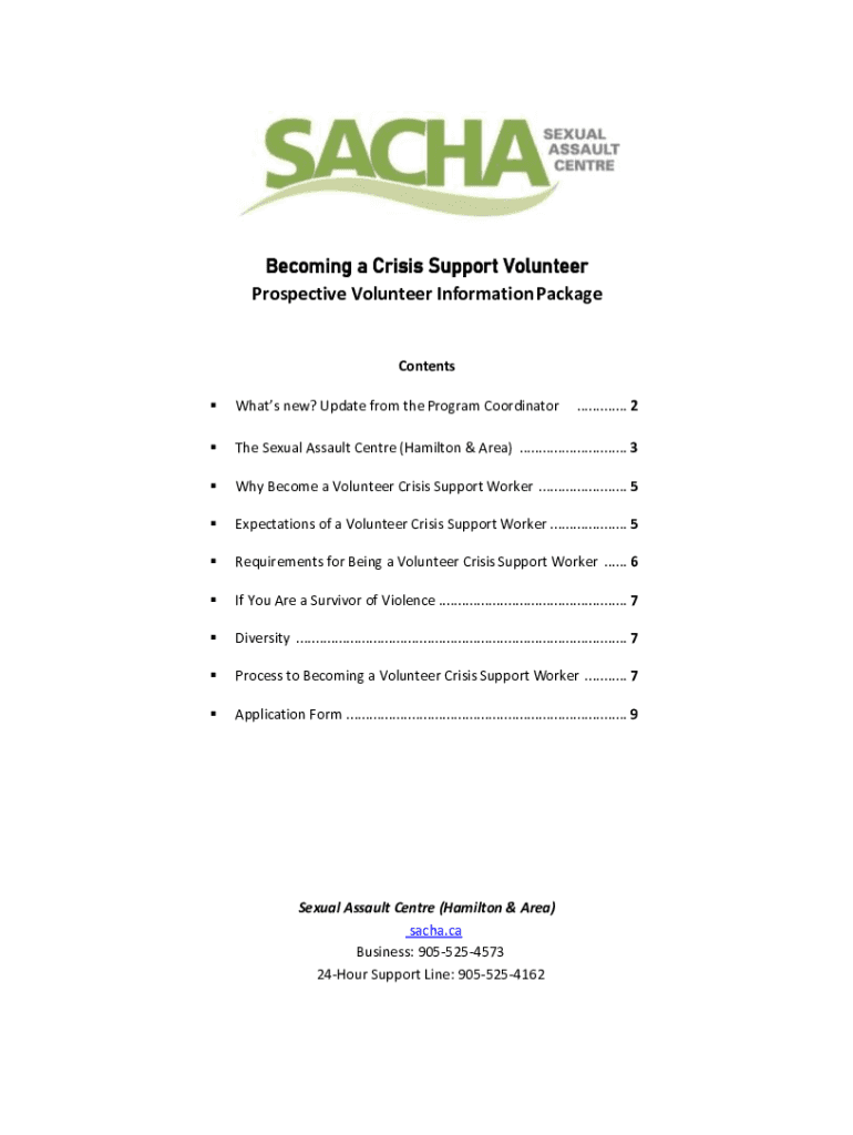 What's new? Update from the Program Coordinator Sexual Assault Center (Hamilton & Area) ............................