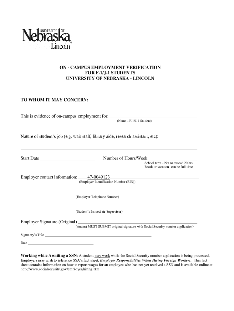 Get the free on-campus employment verification letter - Global Nebraska