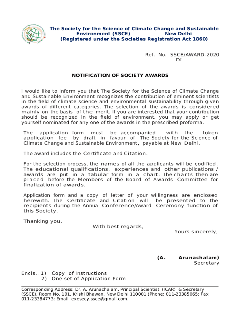 The The Society for Science of Climate Change and Sustainable ... is a document that should be submitted to the relevant address in order to provide some information. It must be filled-out and signed, which is possible in hard copy, or using a certain software like PDFfiller. It helps to fill out any PDF or Word document directly from your browser (no software requred), customize it depending on your purposes and put a legally-binding e-signature. Right away after completion, user can easily send the The Society for Science of Climate Change and Sustainable ... to the relevant individual, or multiple ones via email or fax. The editable template is printable too due to PDFfiller feature and options proposed for printing out adjustment. Both in digital and in hard copy, your form will have got neat and professional appearance. It's also possible to turn it into a template to use later, without creating a new file from scratch. Just edit the ready template.