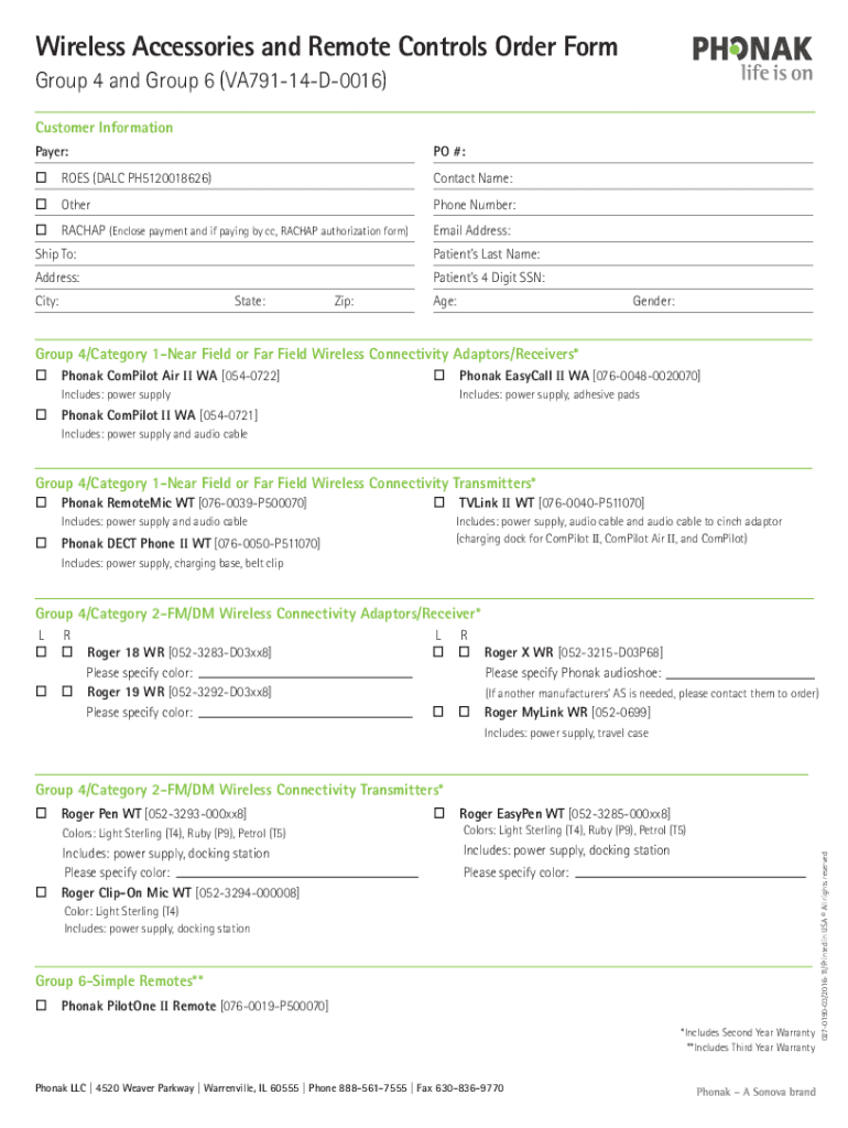 Get the free Wireless Accessories & Remote Controls Order Form. Group 4 and Group 6 (VA791-14...