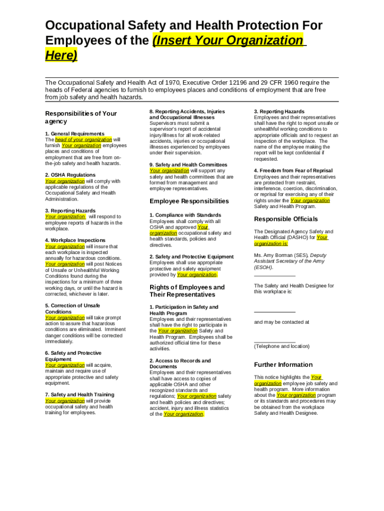 Instructions for the Your Rights as a Federal Employee - Health and Safety - safety army form