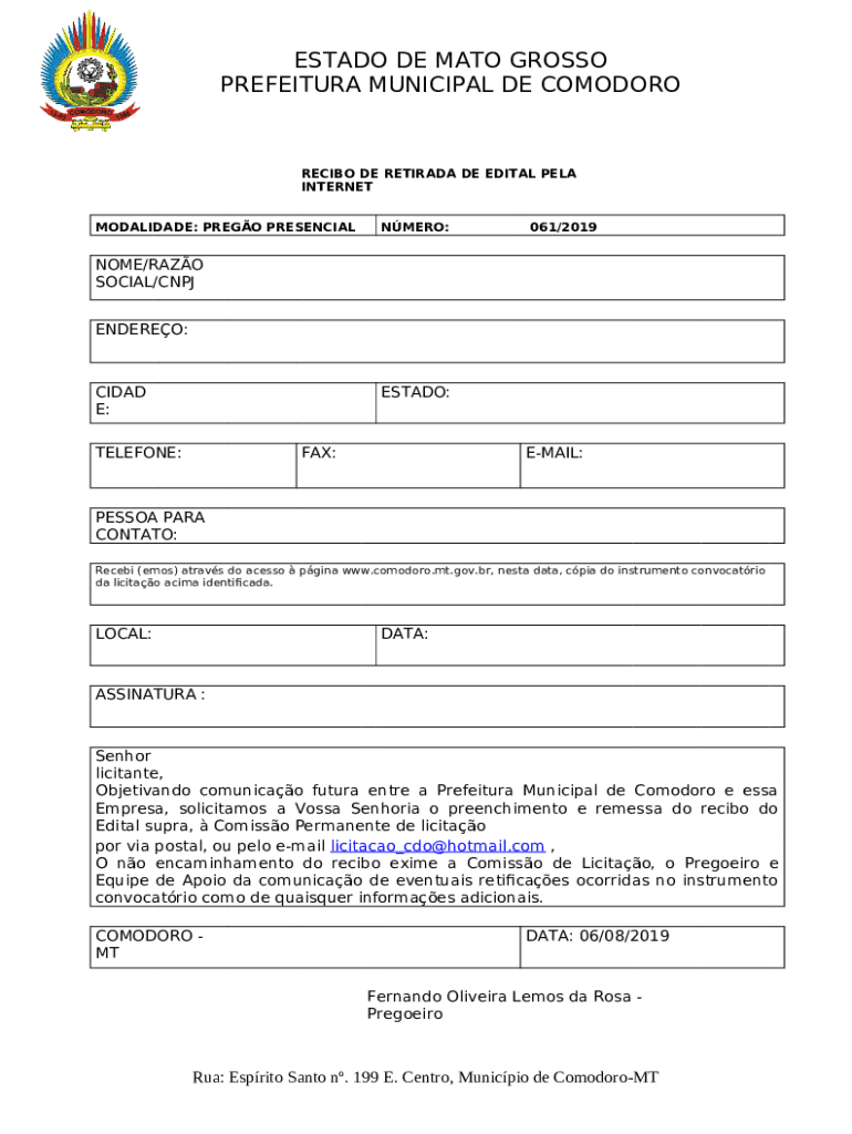 Template por via postal, ou pelo e-mail licitacaocdohotmail instructions