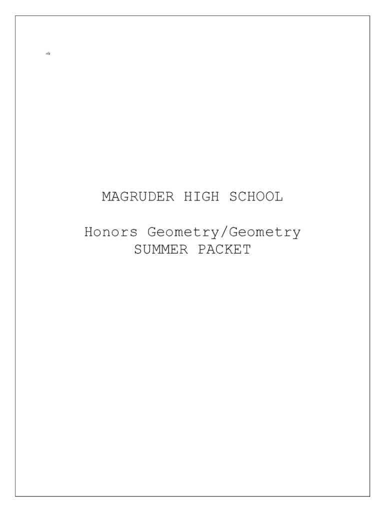 MAGRUDER HIGH SCHOOL Honors Geometry/Geometry SUMMER PACKETIn order to be successful in Geometry, you must have certain prerequisite skills mastered. You will be assessed on the content of this packet