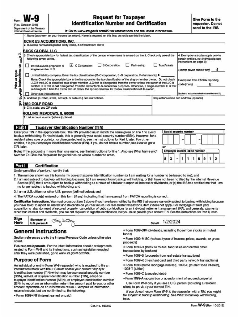Get the free BUCK GLOBAL LLC W9 - signed.pdf