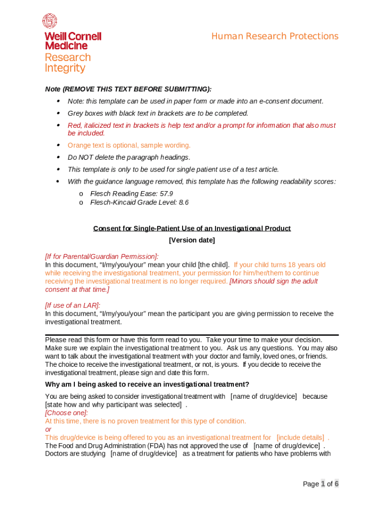 How should you fill out the - Note: this template can be used in paper or made into an e-consent document template